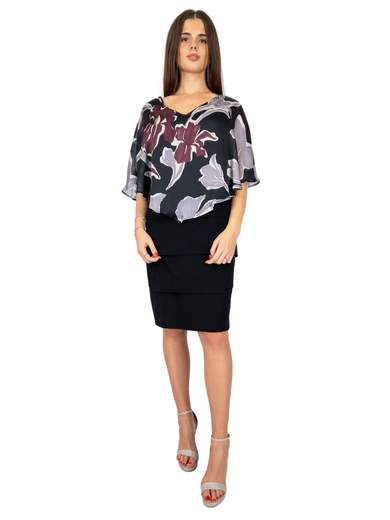 Tubino elegante per cerimonia con mantellina non staccabile. Tessuto stretch, fodera interna.