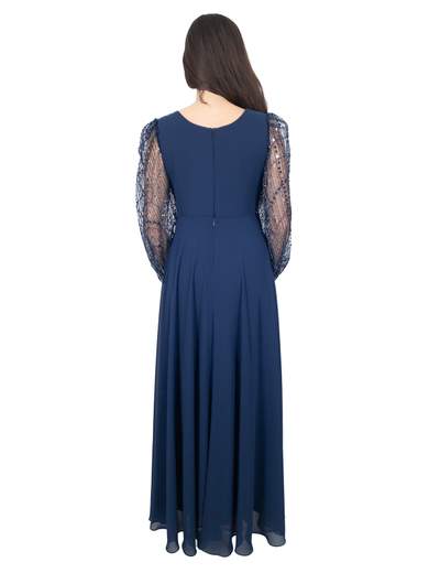 Abito cerimonia lungo elegante con corpetto e maniche lunghe in pizzo e strass. Vestito donna ideale per la mamma della sposa o sposo. Abito lungo cerimonia maniche lunghe, scollo a V, fodera interna.