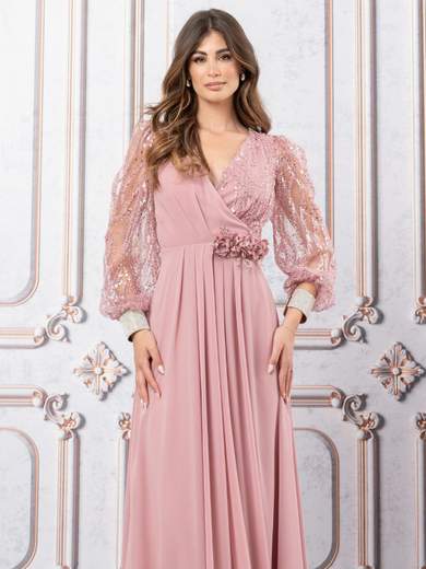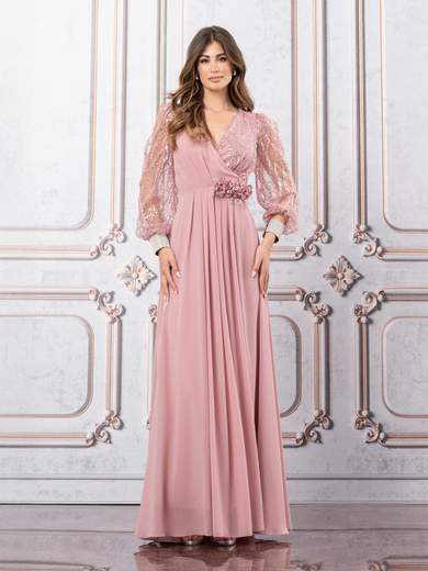 Abito lungo cerimonia mamma sposa o sposo a maniche lunghe.