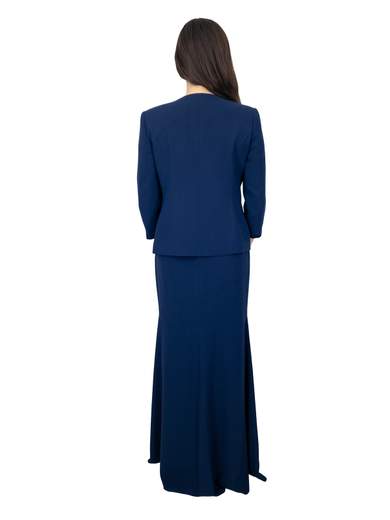 Scopri l’abito lungo da cerimonia che unisce classe e modernità in un equilibrio perfetto. Questo capo a sirena avvolge la silhouette in modo elegante, esaltando le forme con uno stile sofisticato. Realizzato in un profondo blu notte, è arricchito da un’elegante mantella in chiffon, che dona movimento e un tocco di mistero a ogni passo. Perfetto per le mamme degli sposi o per eventi speciali dove l’eleganza è d’obbligo.