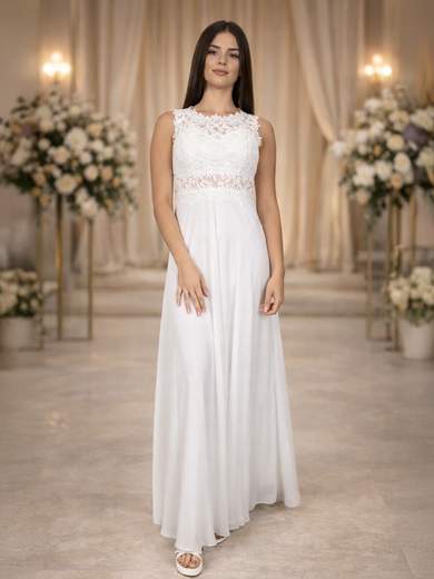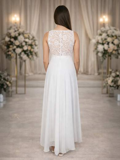 La struttura interna è progettata per offrire il massimo comfort senza rinunciare allo stile. L'interno foderato assicura una vestibilità impeccabile, mentre la gonna con steccata circolare mantiene una forma a corolla definita e strutturata, ideale per valorizzare la silhouette. Perfetto come secondo abito per il taglio della torta o per un matrimonio civile ricercato, questo modello unisce praticità e lusso in un unico design esclusivo.