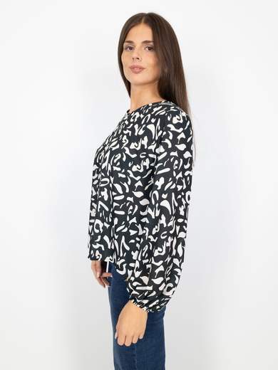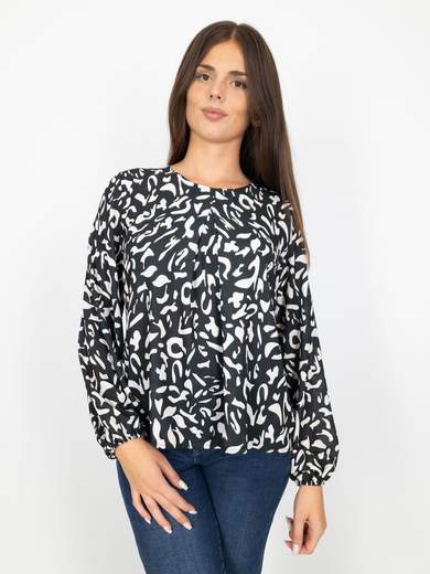 Blusa nera a fantasia floreale in viscosa - Made in Italy
