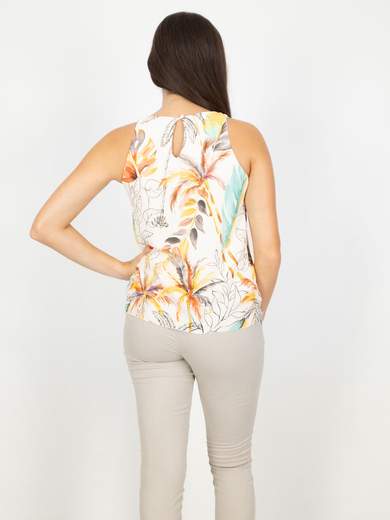 Un capo versatile che si abbina facilmente a pantaloni eleganti o jeans, garantendo sempre un look curato e attuale. Grazie alla sua leggerezza e alla fantasia floreale vivace, diventa un must-have per rinnovare il guardaroba con un tocco chic e senza tempo.