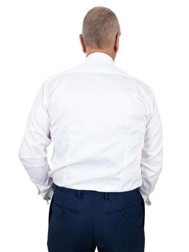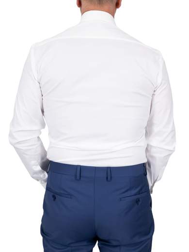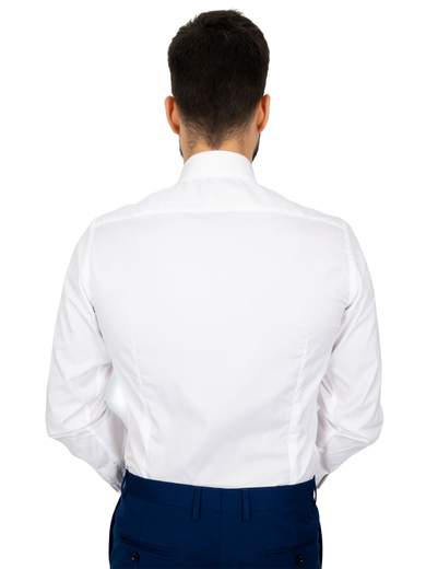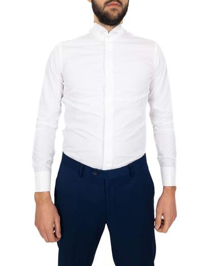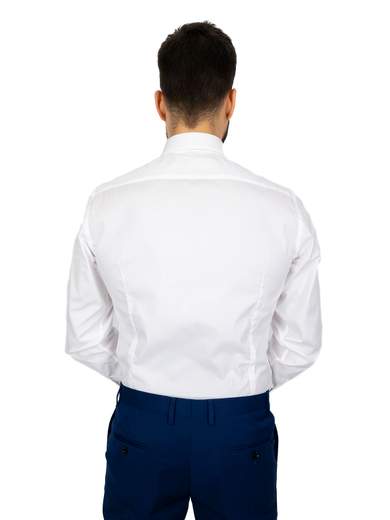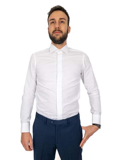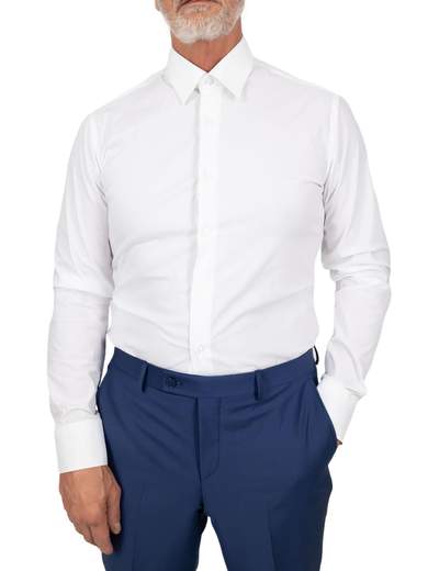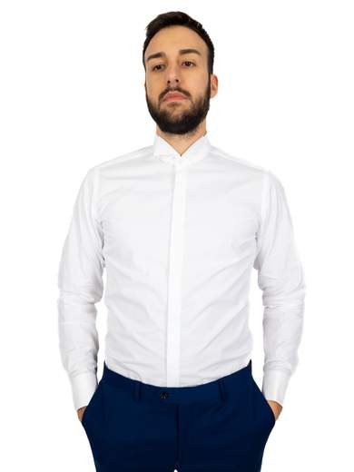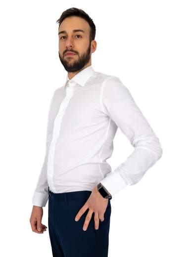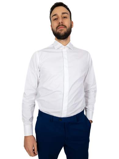 Camicia bianca uomo elegante cerimonia in puro cotone. Camicia uomo collo italiano standard, vestibilità intermedia con riprese.