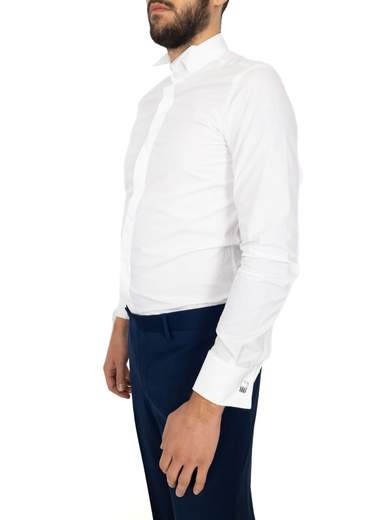 Camicia bianca uomo cerimonia con polsino doppio per gemelli.
