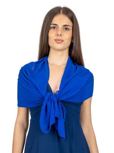 This elegant women’s shawl in lightweight georgette is the perfect accessory to complete formal outfits, evening looks, and special occasions. Its soft, flowing texture ensures a refined fit and a natural drape, enhancing any dress with its versatile design and China Blue color. Entirely Made in Italy, it embodies quality and meticulous craftsmanship.