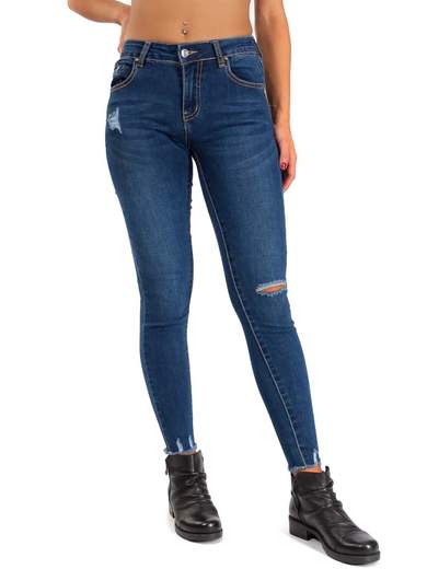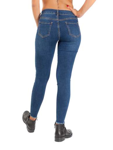 Realizzati con un'attenzione ai dettagli che non passa inosservata, questi jeans elasticizzati donna si distinguono per le cuciture a contrasto che ne esaltano la struttura, aggiungendo un tocco artigianale al design. Il fondo strappato è rifinito con un bordino che può essere risvoltato all'occorrenza, per uno stile ancora più personalizzato. Indossali con una maglia casual o una giacca in pelle per un look che combina tendenza e praticità.