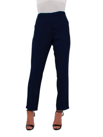 Pantaloni donna vita alta con elastico, fantasia scozzese, modello a sigaretta classico, elasticizzati, fondo con risvolto, finte tasche posteriori. Read all