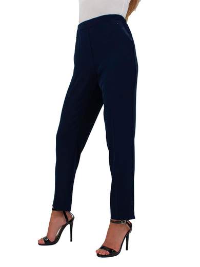 Pantaloni donna vita alta con elastico, fantasia scozzese, modello a sigaretta classico, elasticizzati, fondo con risvolto, finte tasche posteriori.