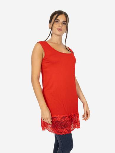 Canotta Donna Oversize con Bordo in Pizzo
