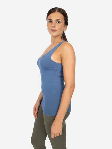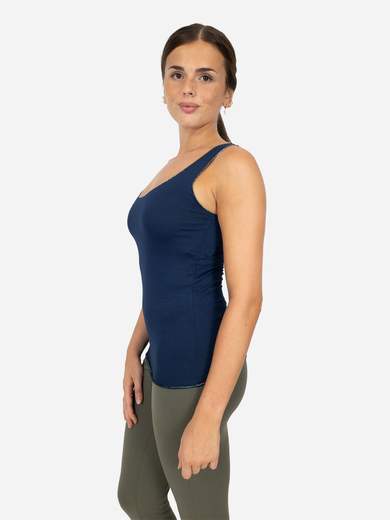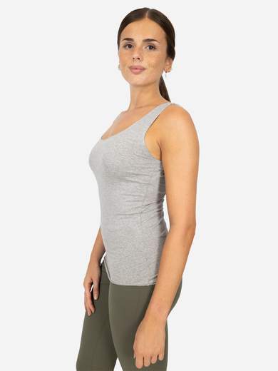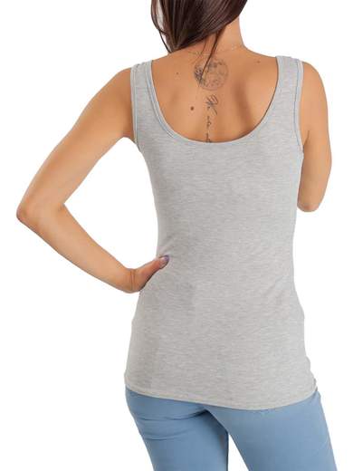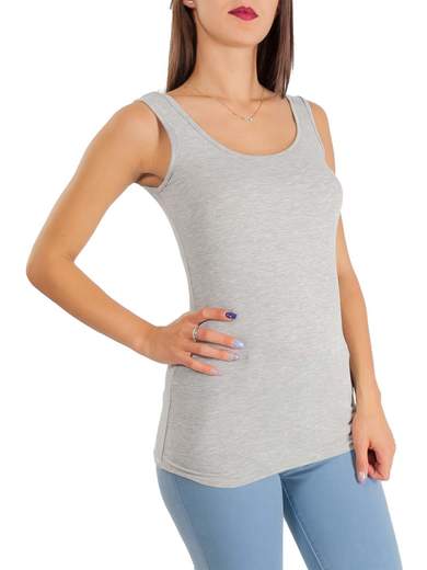 An essential and versatile tank top designed to accompany you throughout your day. The slim fit cut with wide straps enhances your silhouette without being tight, while the soft stretch viscose fabric offers maximum comfort and a pleasant feel on the skin. The classic round neckline adds a subtle, elegant touch — perfect worn alone or under jackets and cardigans.