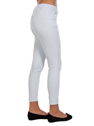 Jeans vita alta, skinny effetto push up, gamba stretta, cinque tasche, chiusura con zip ed un bottone, passanti in vita, tessuto elasticizzato e morbido ideale per la stagione primavera estate, fondo sfrangiato, attillati e stretti.