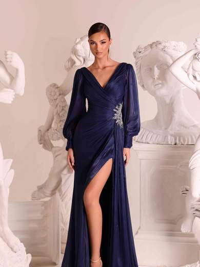 La parte inferiore, realizzata in chiffon leggero, unisce l’eleganza della gonna alla praticità del pantalone, creando un movimento fluido e armonioso ad ogni passo. Completa il look la cintura con chiusura a clip che definisce il punto vita e la stola coordinata inclusa, ideale per cerimonie, eventi serali e ruoli di prestigio come testimone di nozze.