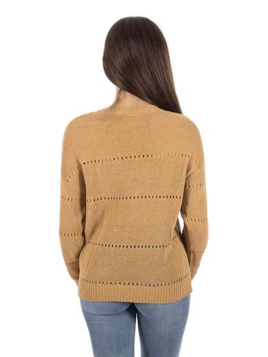 Maglia donna estiva a righe corta maniche tre quarti con risvolto e due bottoni decorativi, a girocollo, diritta a scatoletta, in viscosa, vestibilità regular.