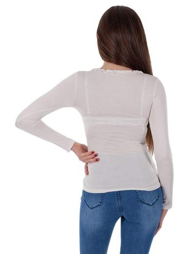 Maglia donna manica lunga estiva con volant, scollo a girocollo, tessuto leggero in viscosa elasticizzato. Indossala nel tempo libero con un paio di leggings. Puoi acquistare l'outfit cliccando qui sotto.