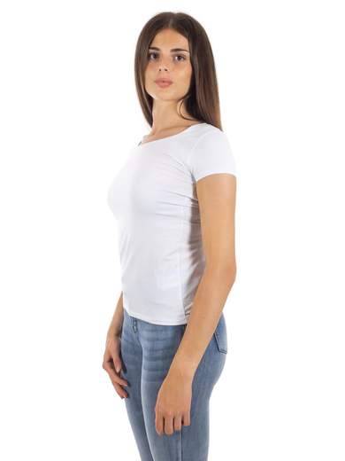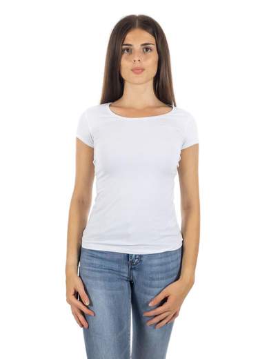 Maglia donna slim fit girocollo manica corta con spacchetti laterali. Tessuto leggero in viscosa e poliammide. Ideale per look casual e raffinati.