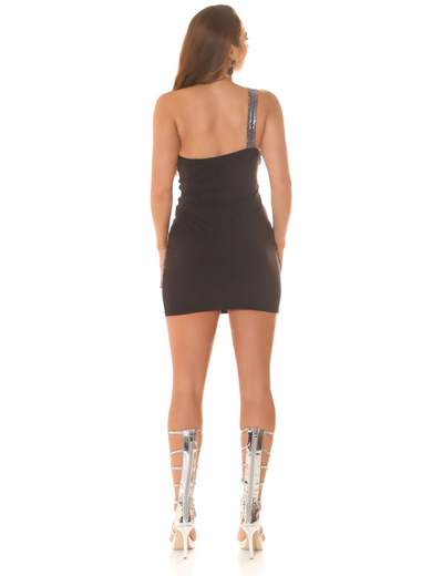 La composizione in poliestere ed elastane garantisce una vestibilità aderente e confortevole, mentre la lavorazione a rete sul retro aggiunge un tocco sensuale e originale. Se cerchi un look che non passi inosservato, questo abito è la scelta giusta.