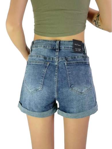 Pantaloncini jeans corti donna denim sfrangiati a vita alta.
