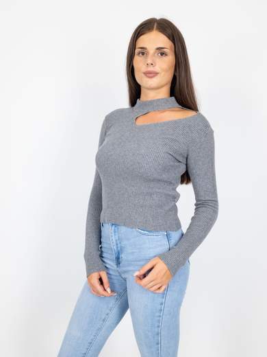 Top crop donna sexy a costine con manica lunga e spallina sottile