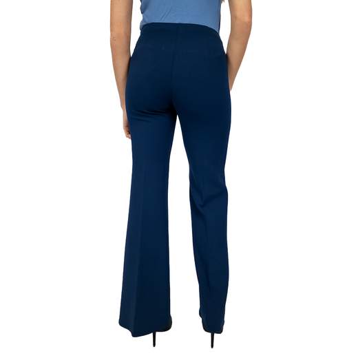 - Flared bootcut cut that elongates the legs